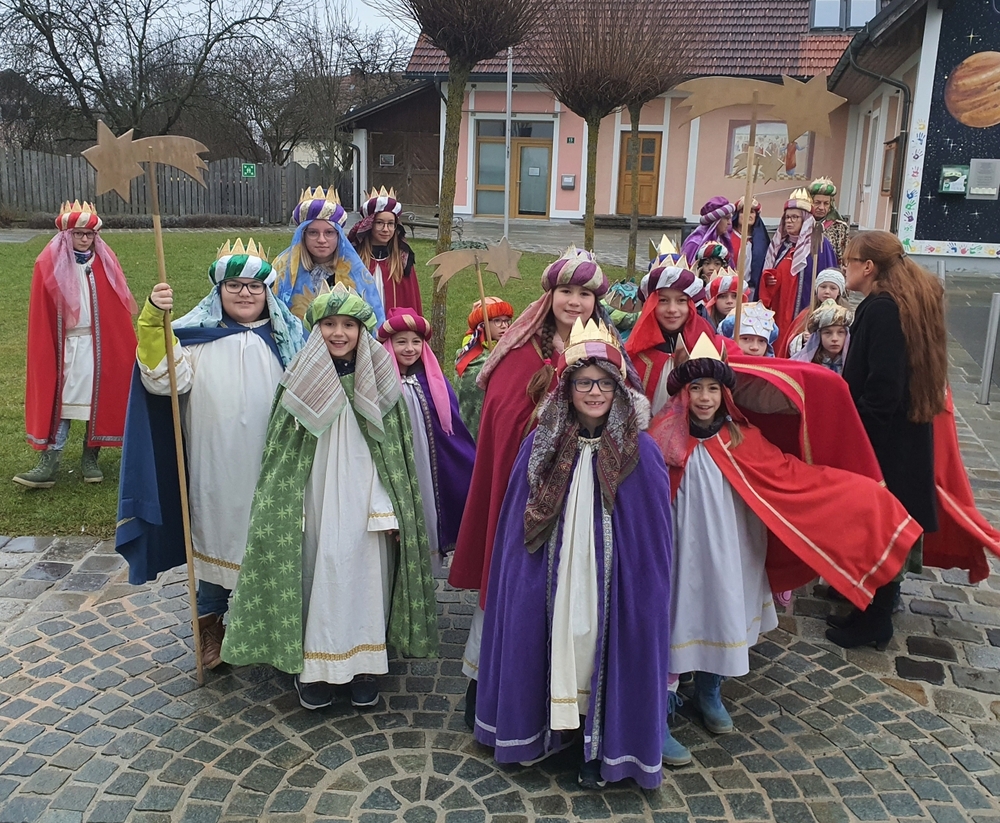 Eine Sternsingergruppe überbrachte die Botschaft, die schon Tage zuvor in den Häusern verkündet worden war: Gott braucht uns, braucht dich und mich, um der Gerechtigkeit auf Erden eine Chance zu geben. Er braucht unsere Solidarität mit den Ärmsten!